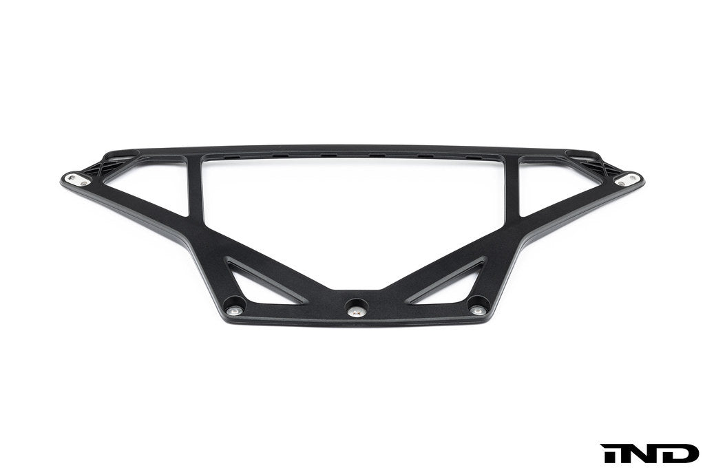 In the engine compartment, a composition of front-end strut braces developed entirely from scratch raises the body rigidity of the new BMW M4 CSL up another level. Using numerical models, the geometry of the cast aluminum elements between the spring strut towers and the front end has been adapted precisely to the forces exerted in different driving situations. This lightweight M precision strut brace in silver-grey stabilizes the vehicle and impressively improves the driving dynamics.